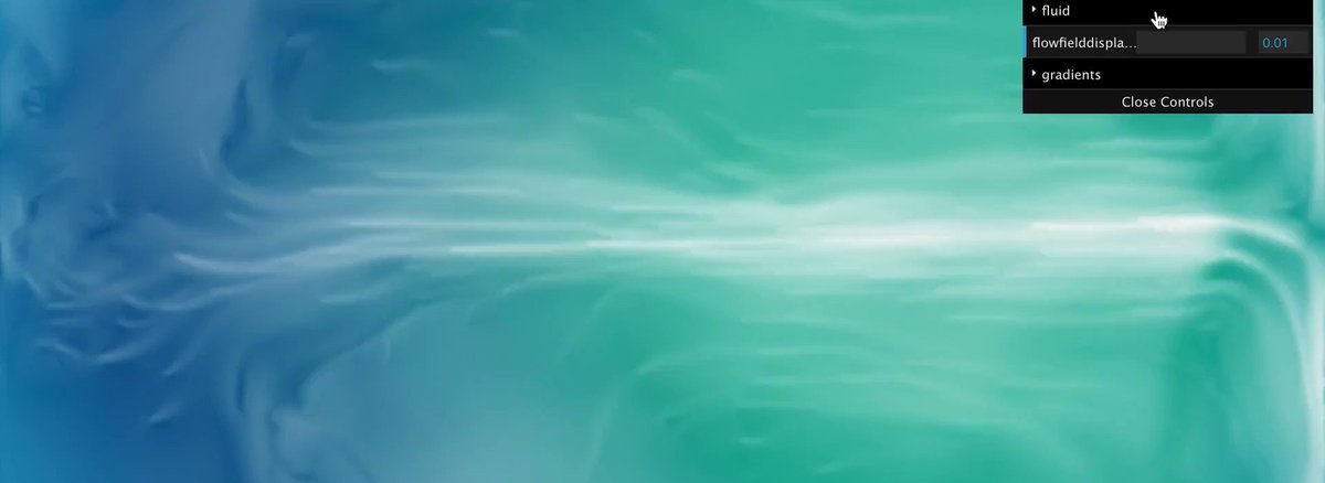 Playing with #flowfields in #fluid sim Lot of options in the top right-GUI #webgl #threejs samsy.ninja/fluiddrive/ind…