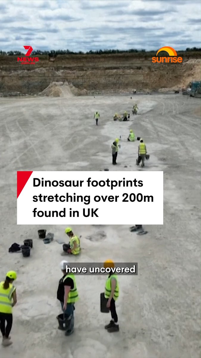 A 200 metre strip of dinosaur footprints has been uncovered by paleontologists in a British quarry. #dinosaur #fossil #dinosaurfootprints #paleontology #uk WATCH SUNRISE FOR MORE | @7plus ☀️
