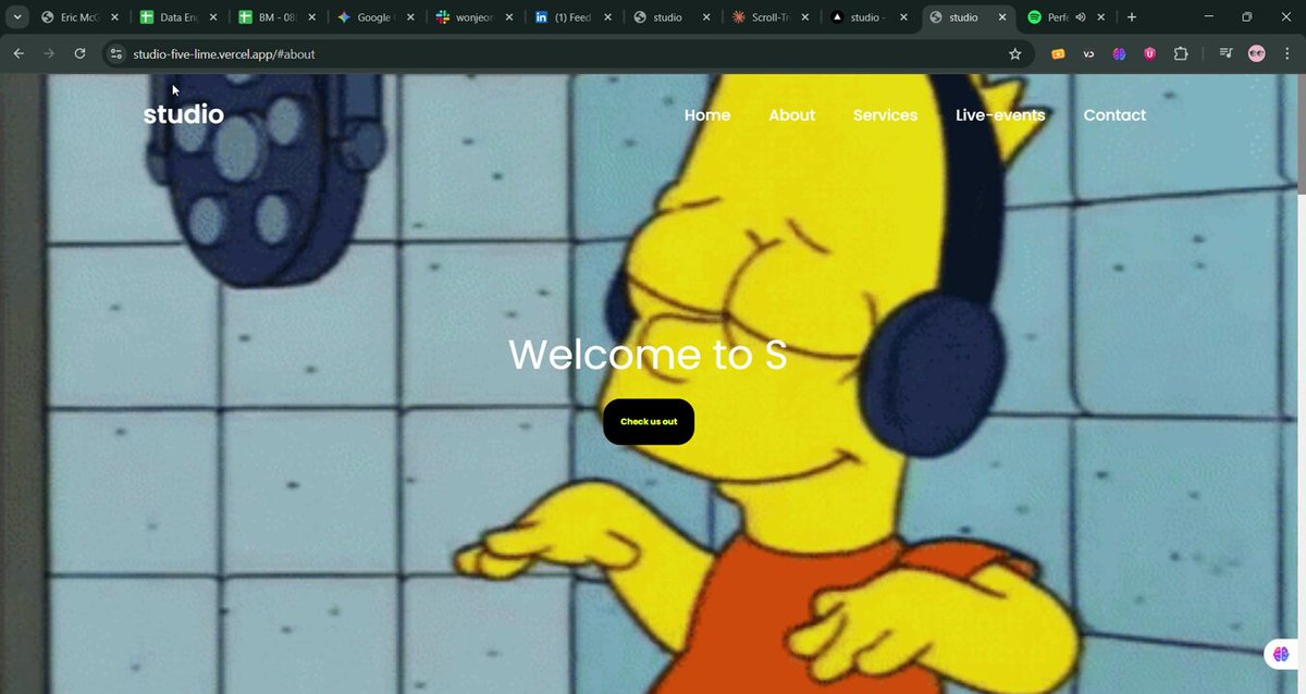 Another day, another site 🚀 Just launched this sleek studio website built to showcase creativity and premium audio services. Check it out 👉 studio-five-lime.vercel.app #WebDesign #WebDevelopment #FreelanceDeveloper #Portfolio #UIUX #Design #Startup #CreativeStudios #BuildInPublic