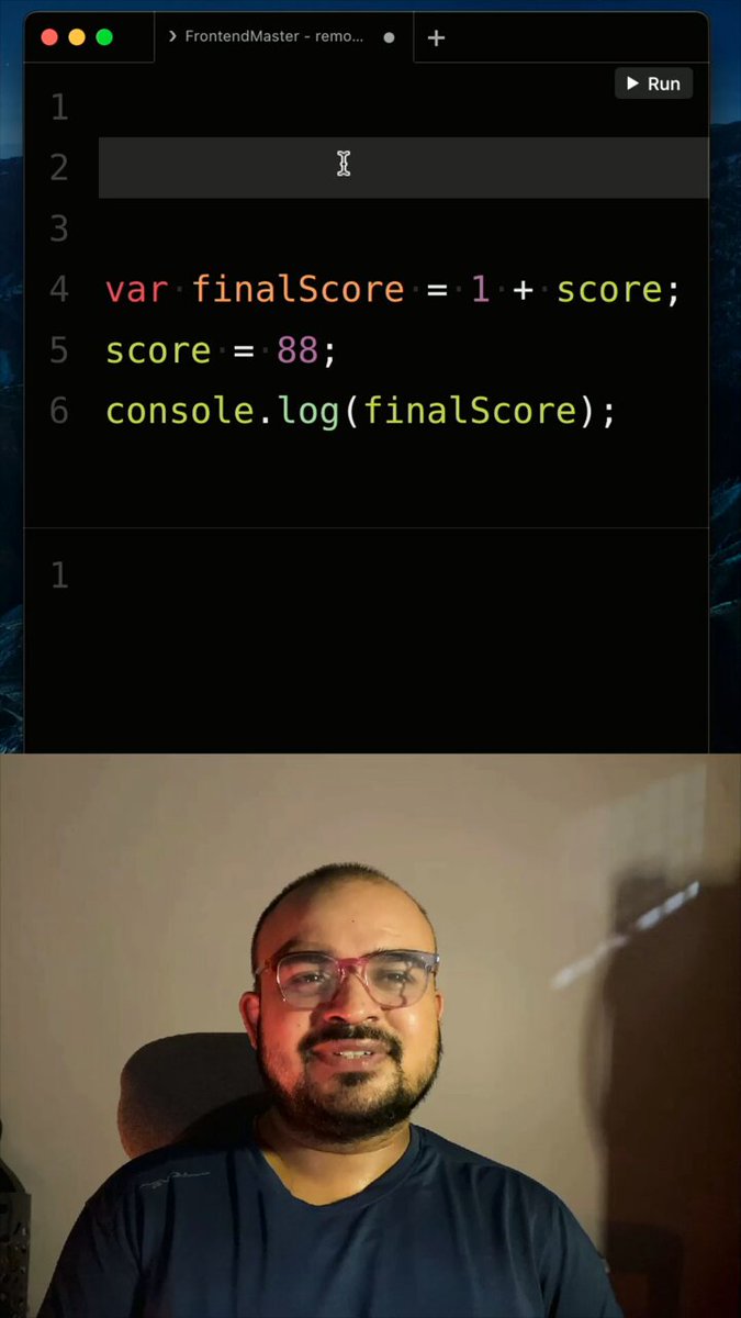 Take a guess before scrolling!🙃 ✅ Output: 12 10 Why?var chacha inside getChacha is hoisted & shadows the global one. Initially undefined, so if passes → assigns 12 → returns 12. Global chacha stays untouched → still 10. #JavaScript #Hoisting #FrontendInterview #React