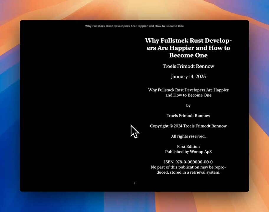 Yet another update to my pre-release of my book on full stack 📚🚀 Rust development. It's coming together nicely and I can't wait for you to see it! 🤩 #fullstackrust #bookupdate #codingcommunity