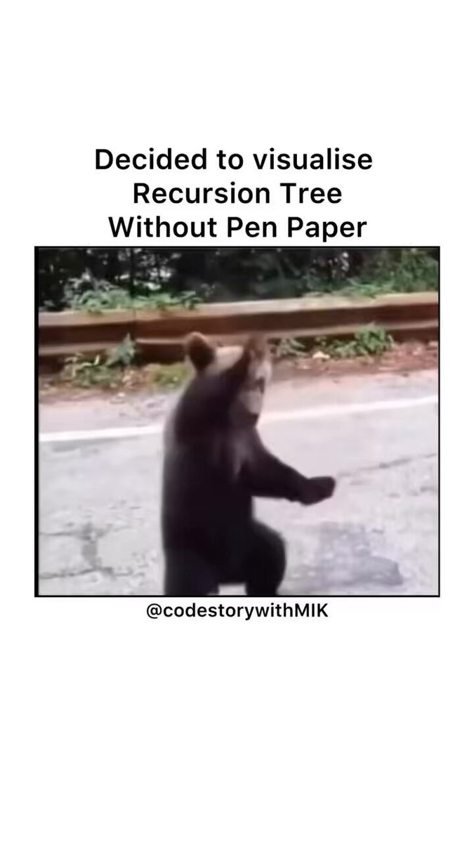 Bhai ne recursion tree hawa me visualise karne ka challenge leliya. Bhai pen aur paper me karleta 🥹 #dsa #codingmemes #funnycoder #programminghumor #leetcode #coderslife #codingstruggles #relatablecoding #techhumor #programmer #mik #MIK #codestorywithmik #codestorywithMIK