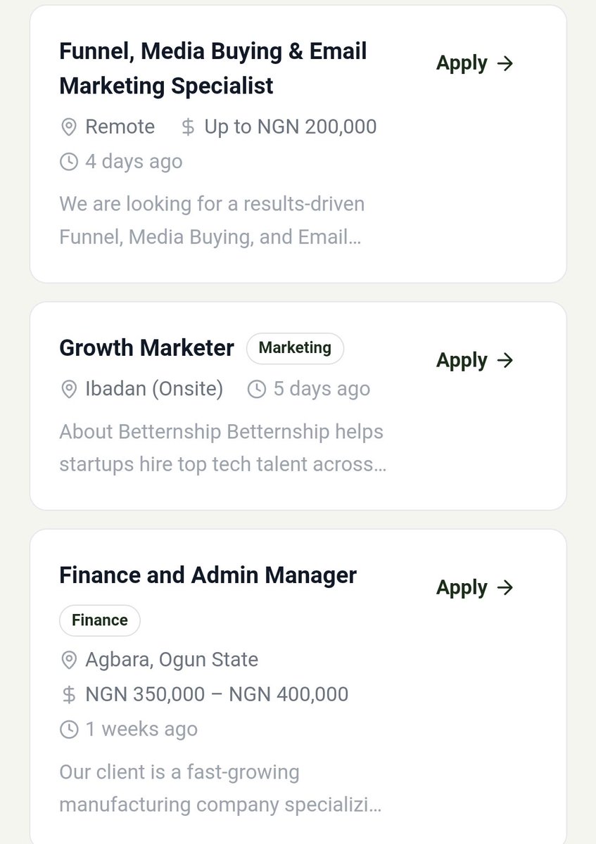 🚨 Betternship — A platform you shouldn’t joke with 👀💻 Create one profile and get discovered by recruiters 💰 Available roles & pay: • Marketing: ₦150k – ₦200k+ • Finance: ₦350k – ₦400k • DevOps: $800 – $900 • Other roles available 🌍 Remote + Nigeria-based