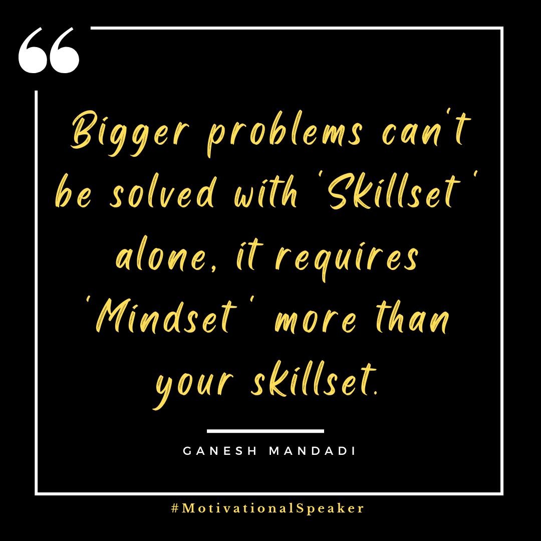 💡 Don't limit your potential by solely relying on your skillset. The true power lies within your mindset and the way you perceive challenges. 🚀 #Inspiration #Motivation #GaneshMandadi #MotivationalSpeaker #SuccessMotivation