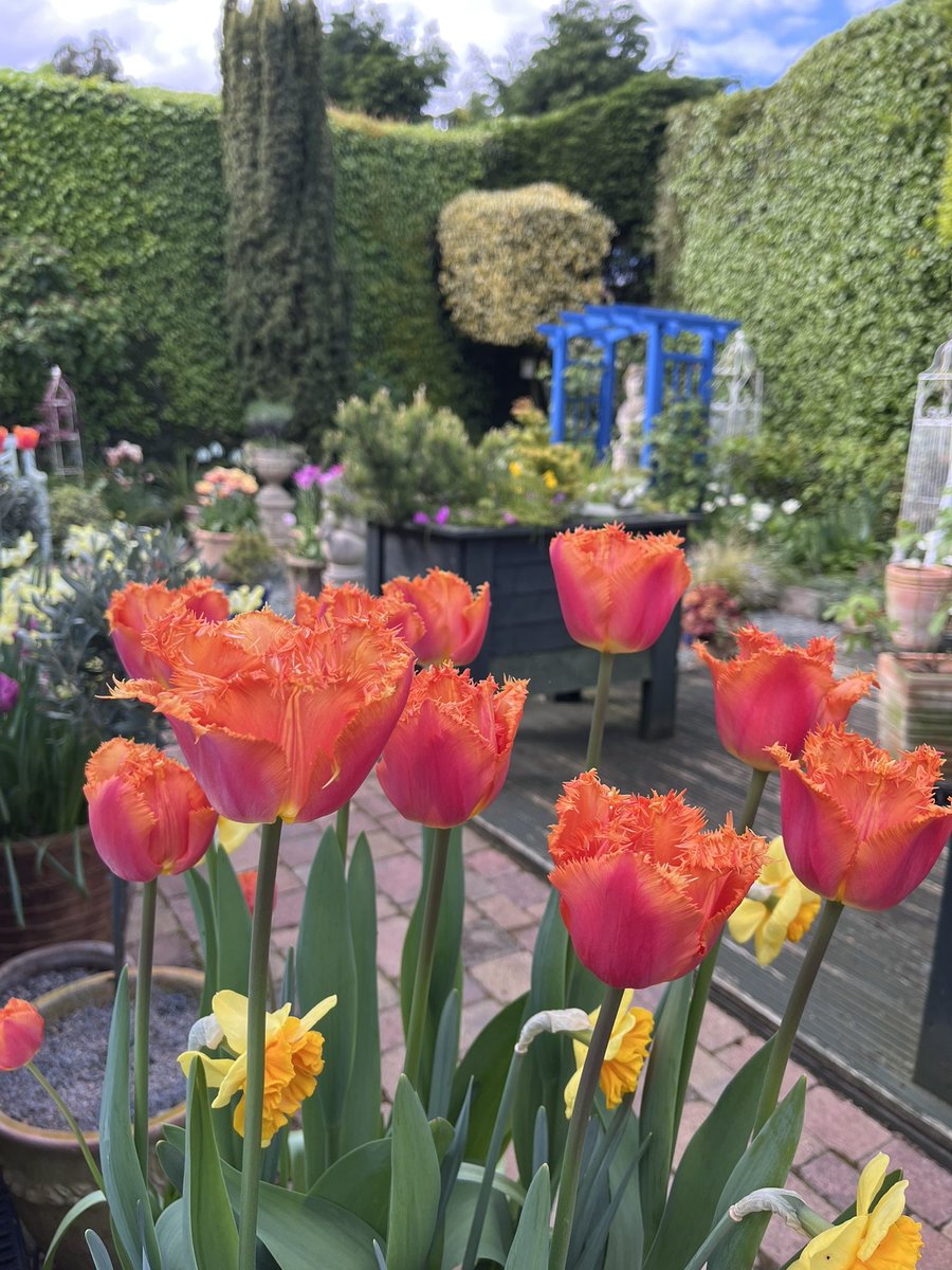 Good morning everyone. It’s a breezy but sunny one here in South East Staffordshire. I’ve just returned from the gym and am enjoying a ☕️. Pics show the last part of this bulb lasagne. Tulips Mount Tacoma. Have a great weekend. #gardening #gardenersworld