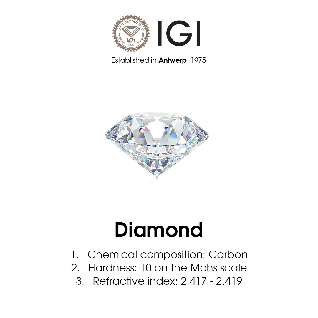 The epitome of strength and brilliance, diamonds stand as the ultimate symbol of beauty and resilience. With a perfect 10 on the Mohs scale and unmatched sparkle, this gem is as enduring as it is captivating. ๐โจ #DiamondFacts #IGI #GemstoneScience #IGIDiamond