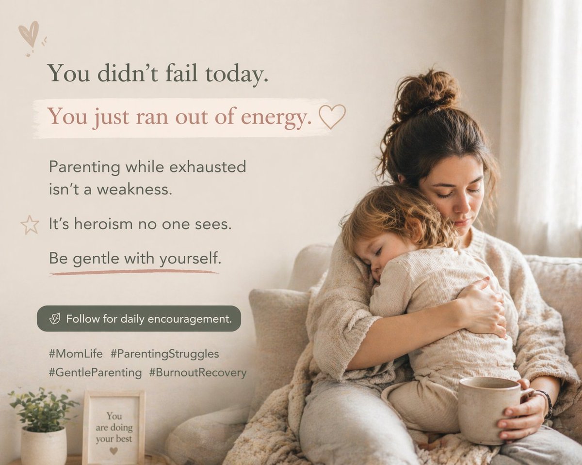 You didn’t fail today. You just ran out of energy. 🤍 Parenting while exhausted isn't a weakness. It’s heroism no one sees. Be gentle with yourself. Follow for daily encouragement. #MomLife #ParentingStruggles #GentleParenting #BurnoutRecovery