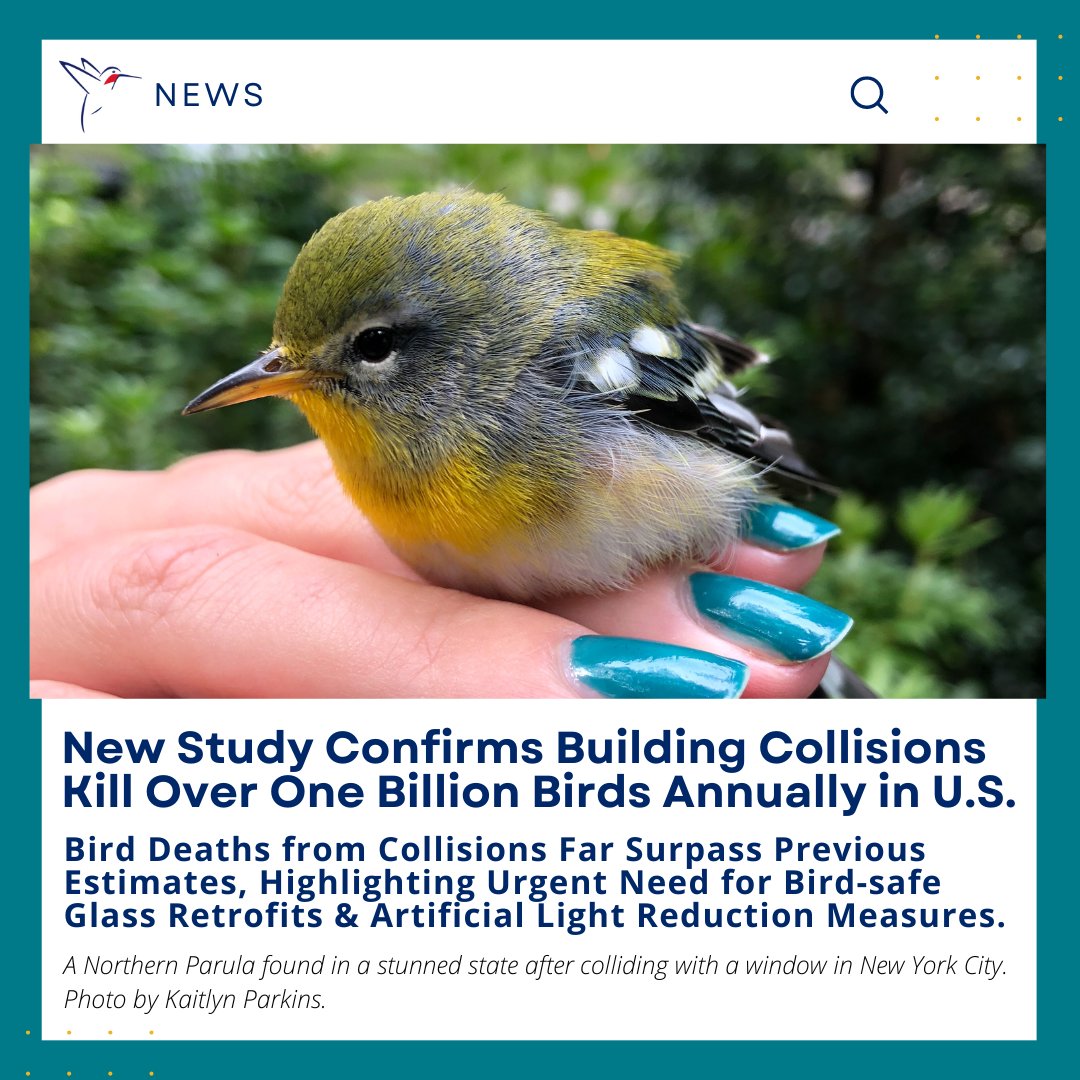 BREAKING! New study published in @PLOSONE by NYC Bird Alliance, @FordhamNYC, @ABCbirds, and @stonybrooku confirms OVER 1 BILLION BIRDS die annually from #glasscollisions in the U.S.—far more than previously thought. Learn more: nycbirdalliance.org/blog/new-study…