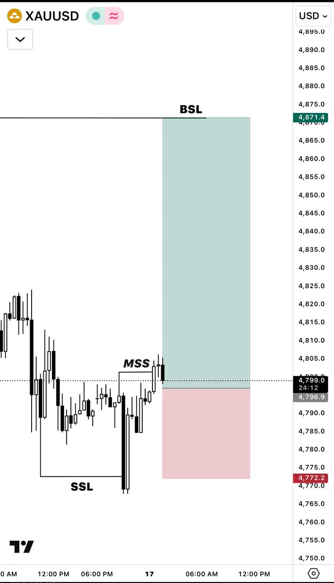 #xauusd #gold Price is reacting from a key intraday demand zone after sweeping local liquidity and tapping previous support. Current structure suggests a bullish continuation if buyers defend the 4800 area. A successful hold above this zone could trigger an impulsive move