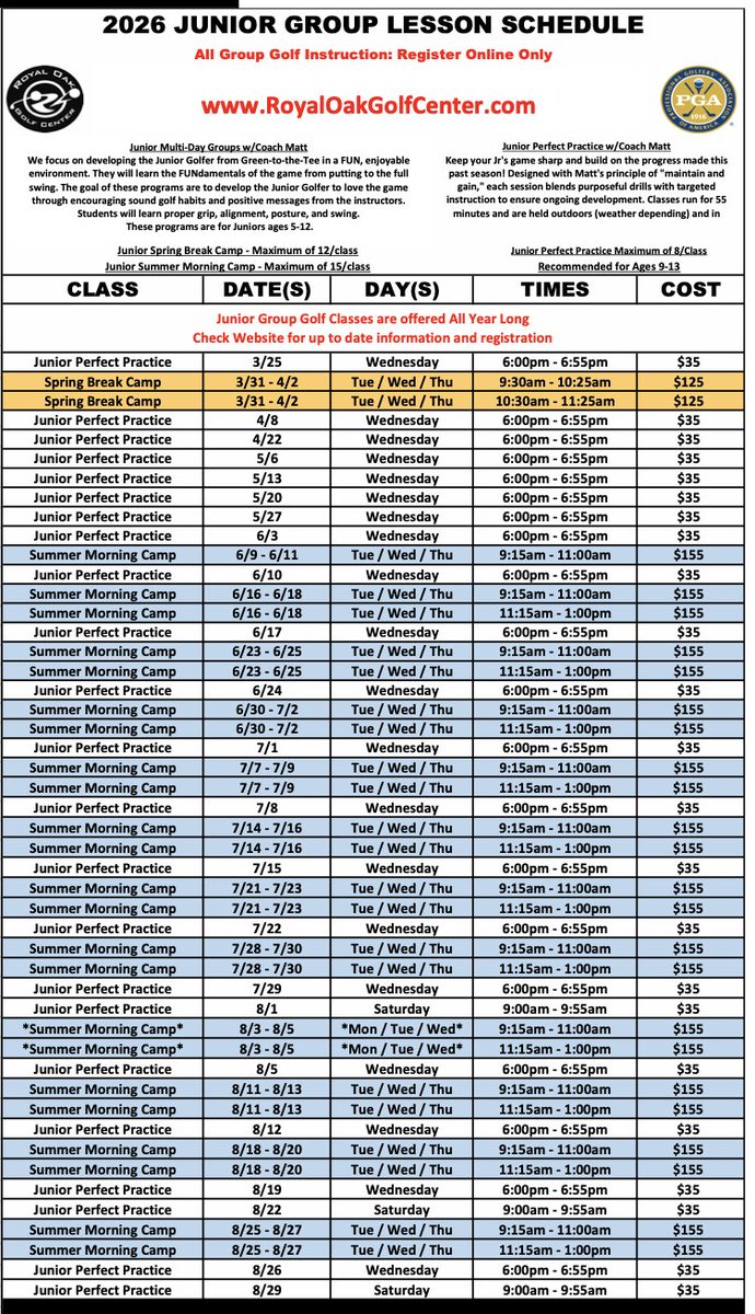 Sign-Up for our 2026 Perfect Practice Golf Class! Master the art of consistency & precision with Perfect Practice led by ROGC Instructor Matt Berger. This dynamic 55 minute session is designed to elevate every aspect of your game. Sign-Up NOW: royaloakgolfcenter.proagenda.com/groups #GolfLessons
