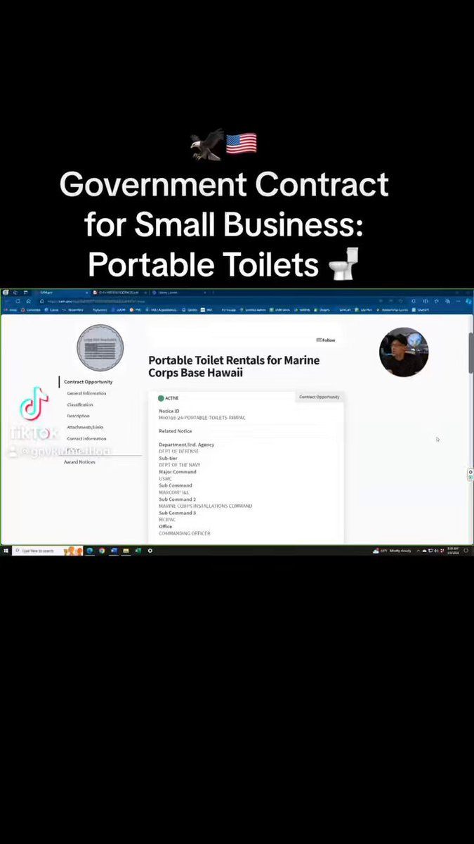 Government Contract for Small Business on SAM.gov: Portable Toilet Rentals, Marine Corps Base Hawaii, BOD 31 #govkidmethod #govcon #governmentcontract #samgov #federalcontracting #governmentcontracts #governmentcontractor #governmentcontracting #govcontracts
