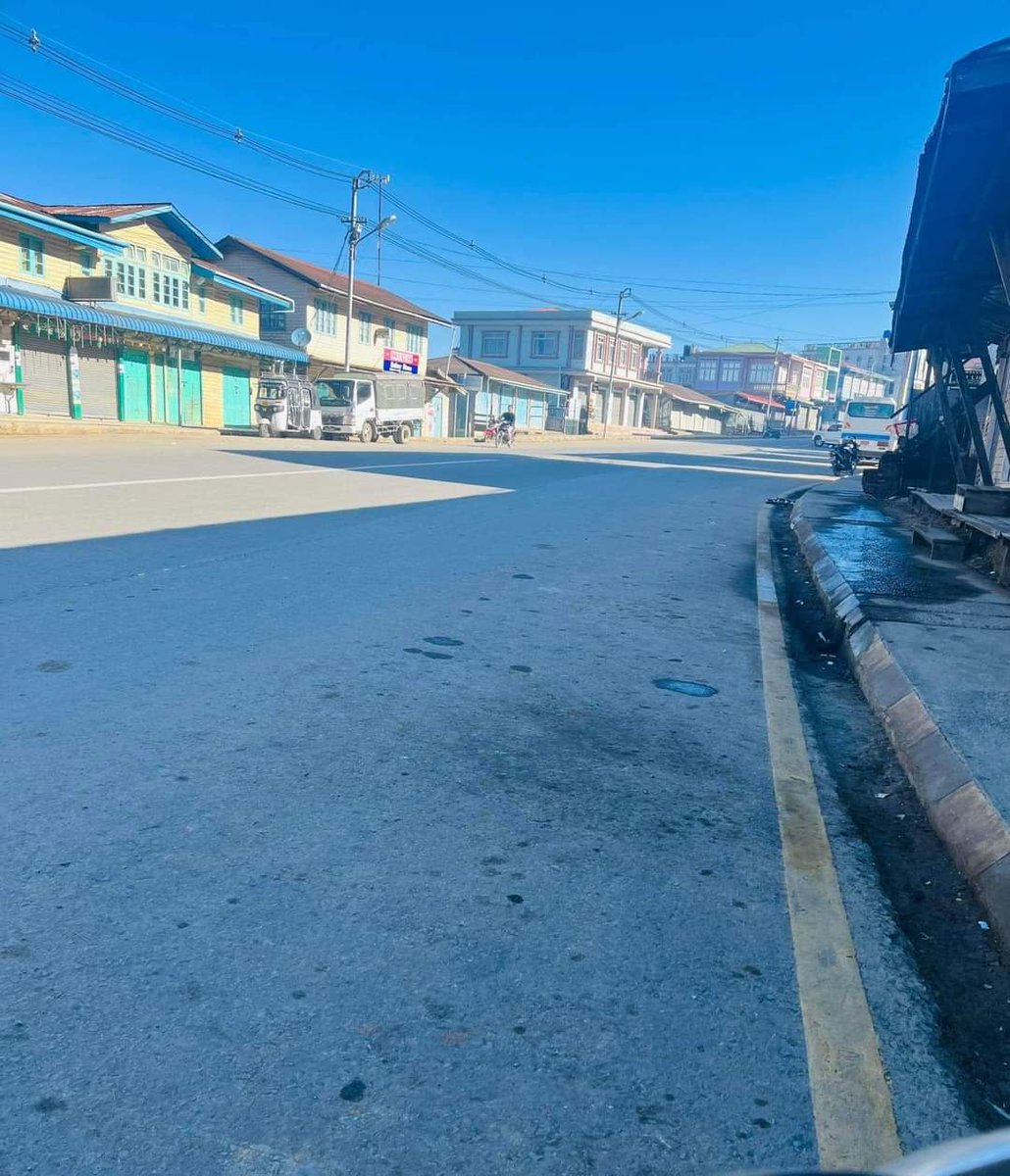 #Myanmar 🇲🇲: empty streets in the #Chin state capital of #Hakha today as the entire city is on strike in protests of yesterday's junta airstrikes on a #CNF resistance camp on the Indian border. #WhatsHappeninglnMyanmar