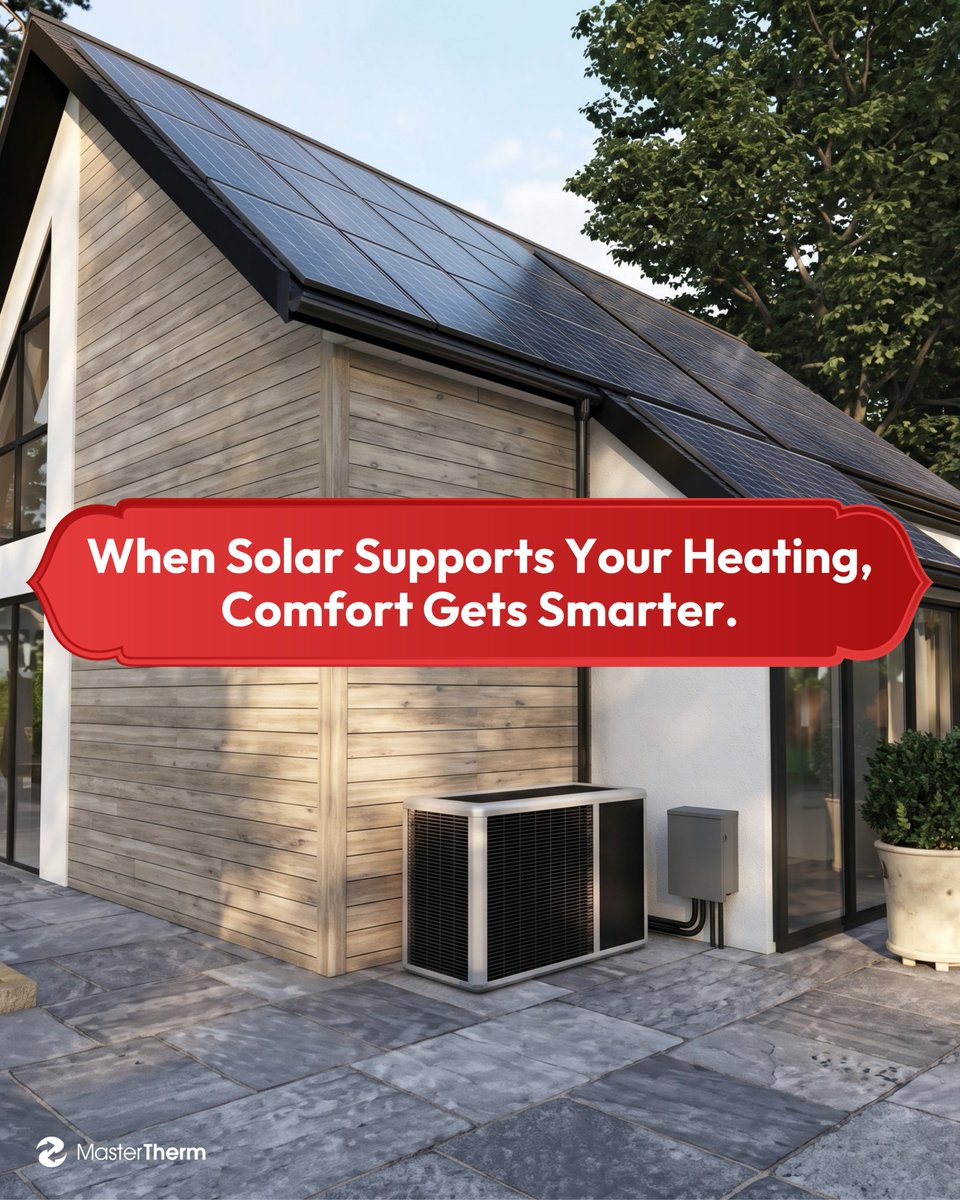 When your #solar powers your heating, comfort gets smarter ☀️ Solar panels don’t heat your home - they power the #heatpump that does. ✔ Less reliance on the grid ✔ Smarter use of the energy you generate ✔ Heating and hot water, working together 🔗 mastertherm.ie/our-sector-pro…