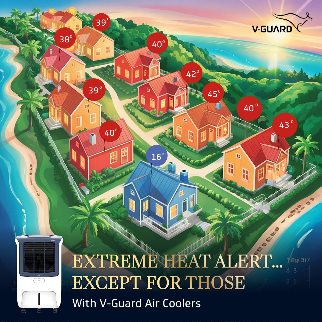 ☀️ Extreme heat is everywhere… except here! While the neighborhood boils, one home chills at 16°C—all thanks to V-Guard Air Coolers. 💨 Beat the heat without breaking a sweat. #CoolerThanTheRest #VGuardAirCoolers #HeatWaveHack #SummerReady #StayCool