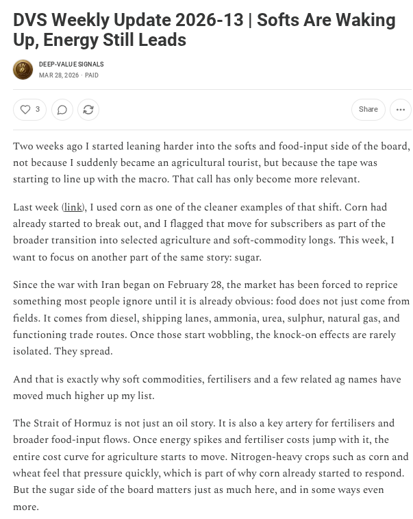 Weekly Update | War Premium, Rotation and a Faster Revamp What’s inside? #Oil and #Helium are the talk of the weekend; and yes, I’m still bullish. I’ve slotted in a new energy pick into the Core 15 and swapped out an energy name I added a few weeks ago that simply was not