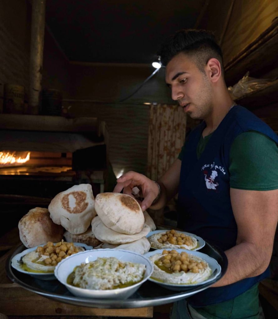Mahmood Darwish sorting deliveries of fresh #hummous straight from the restaurant and hot bread from the baker in #Tripoli, #Lebanon. 📷 @iamshaima #tastelebanon #streetfood