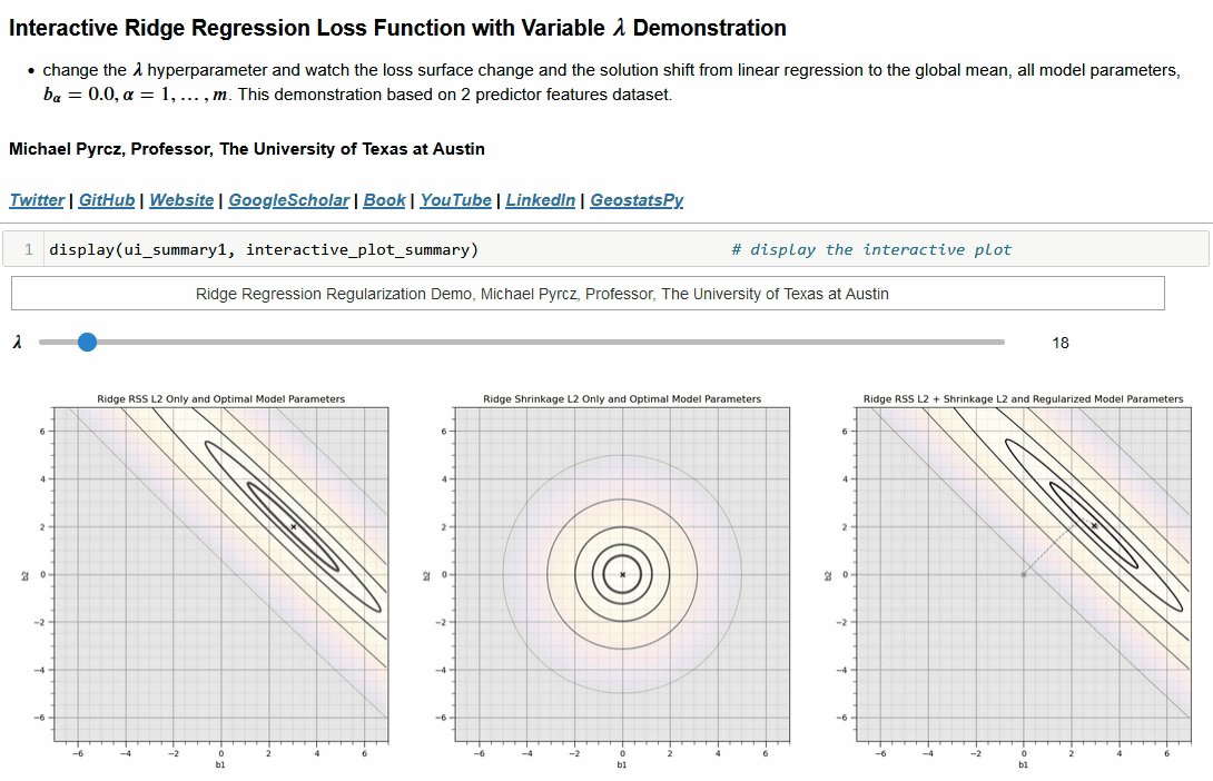 I teach ridge regression in my #MachineLearning course as a first introduction to #hyperparameter tuning & model #regularization. In some cases linear regression is too complicated! My students were interested in how regularization changes the loss function, I so I made this…