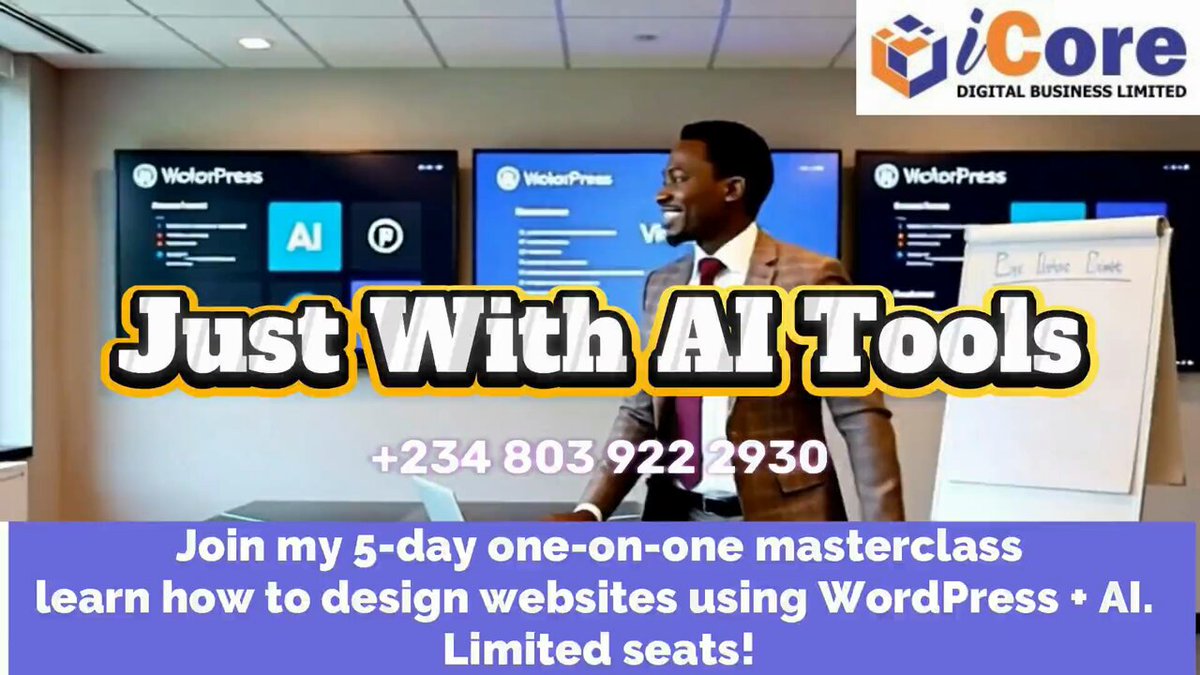๐๐ผ๐ถ๐ป ๐บ๐ ๐ฑ-๐ฑ๐ฎ๐ ๐ผ๐ป๐ฒ-๐ผ๐ป-๐ผ๐ป๐ฒ ๐ ๐ฎ๐๐๐ฒ๐ฟ๐ฐ๐น๐ฎ๐๐: learn how to design websites using WordPress + AI Tools! Register๐ icore.digital/learn-wordpresโฆ #iCoreDigital #SegunIge #JustSayNoToIlliteracy #DigitalLiteracywithSegunIge