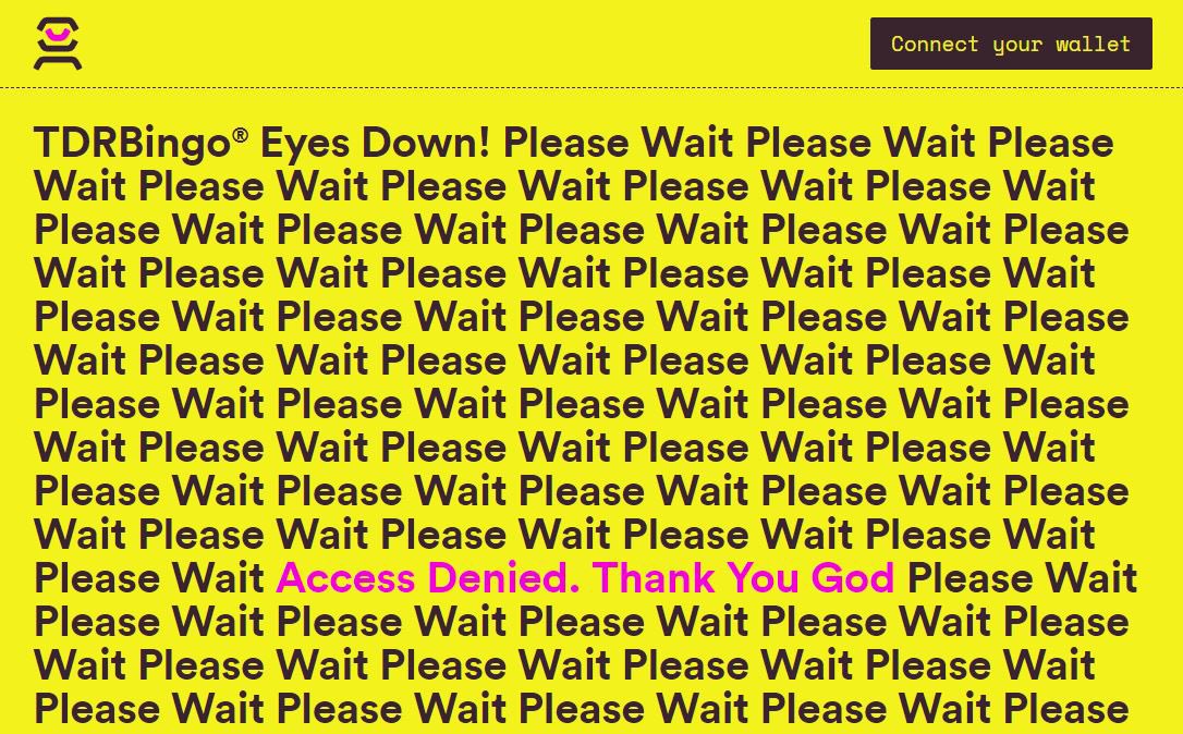 Please Wait // Wait Please Level 1 —> Complete Level 2 —> Coming Soon. Eyes Down! TDRBingo.com #reclaimtheether #tdr #iantdr #tdrbingo #divinerights #thedesignersrepublic #comingsoon #vectorsatdawn #graphics #design