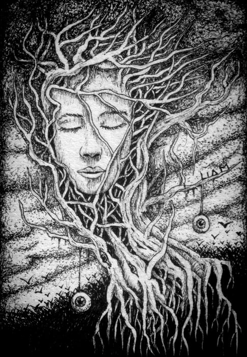 Late Gm) "reincarnation. way to yourself" Ink on paper #ink, #inkonpaper, #inkdrawing , #Reincarnation , #girl, #stars, #inknft, #nft, #SOUL