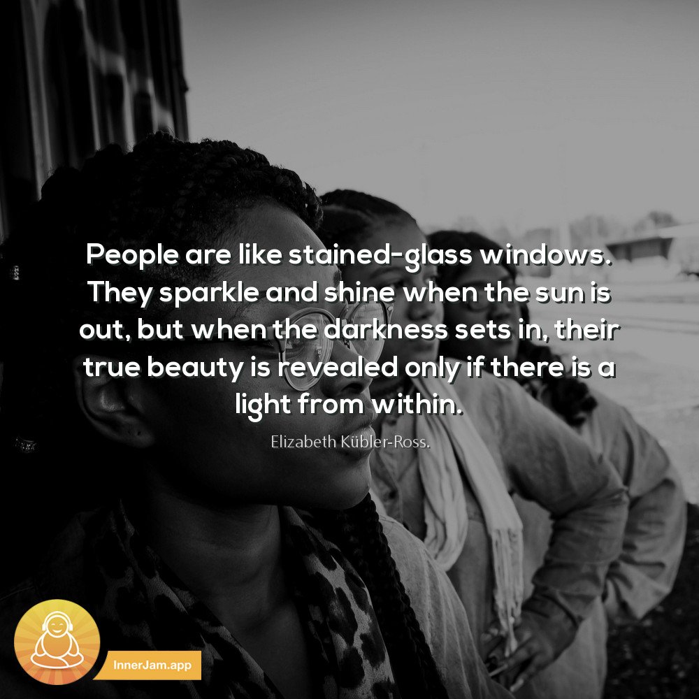 "People are like stained-glass windows. They sparkle and shine when the sun is out, but when the darkness sets in, their true #beauty is revealed only if there is a light from within." #innerjamapp An @InnerJamApp user said: "This is EASY, fire and forget #self-improvement."