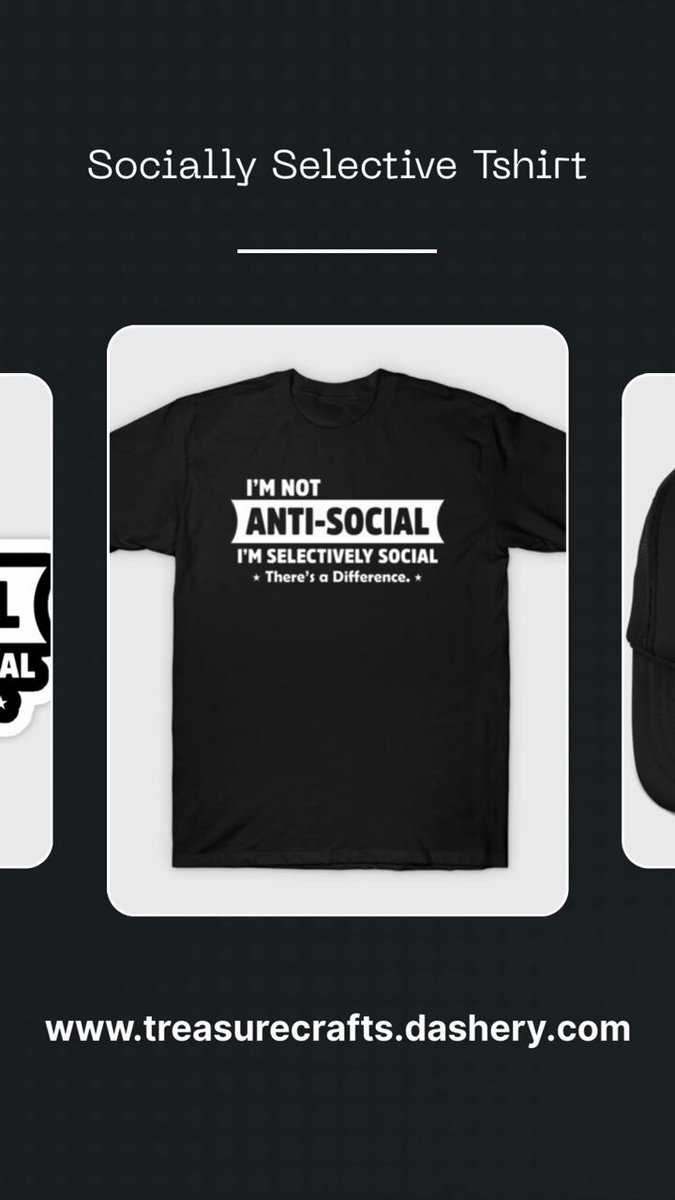 Funny Introvert T-Shirt – I’m Not Anti-Social, I’m Selectively Social. Show your introvert side with this witty t-shirt. Perfect for people who value quality over quantity in relationships. Link in bio to grab yours today & wear your humor proudly! #IntrovertHumor #FunnyTshirt