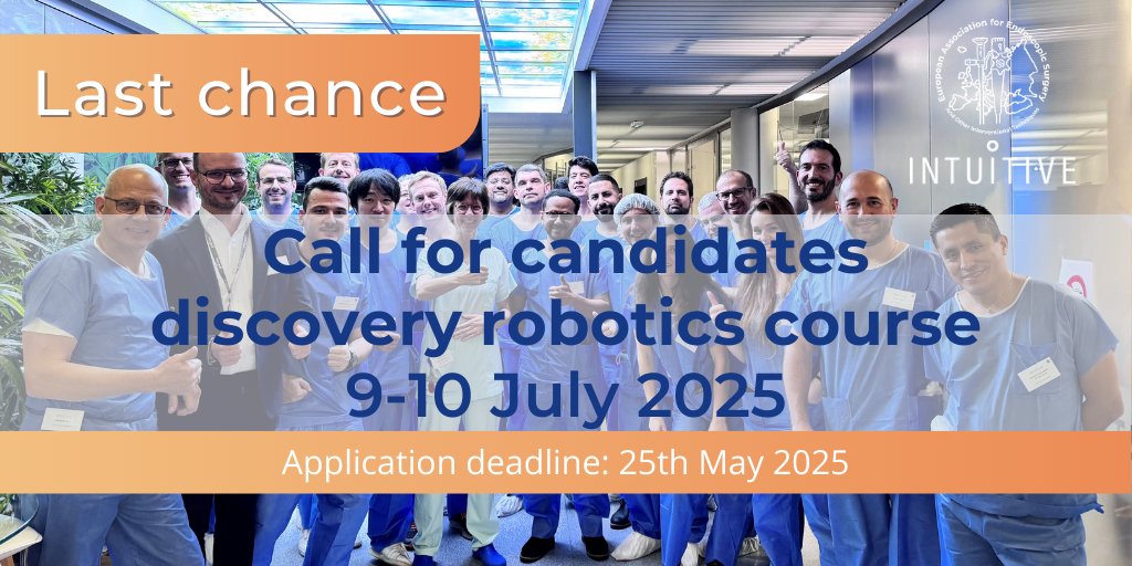 🚨 EAES members – LAST CHANCE! 🚨 Apply now for the Intuitive Discovery Robotics Course, 9–10 July 2025 at IRCAD, Strasbourg 🗓 Deadline: TOMORROW (25 May) 📩 Check your inbox for the application form! #EAES #RoboticSurgery #IRCAD #SurgicalTraining