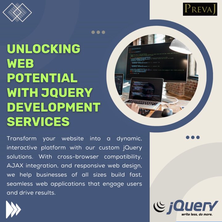 Unlocking Web Potential with jQuery Development Services Check out our more detailed Brochure: bit.ly/3U6fVyF Our Website: bit.ly/421SiKx #jQueryDevelopment #WebDevelopment #ResponsiveDesign #AJAXIntegration #WebPerformance #CrossBrowserCompatibility