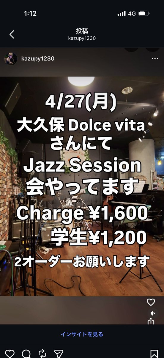 日付変わりまして4/27(月) 大久保 dolce vitaさんにて Jazzセッション大会やっております。 置きウッドベースもあります。 どしどしお参加下さい。 宜しくどうぞ! maps.app.goo.gl/abmsoWcKJ5bZHX… #jazzsession #jamsession #ジャムセッション #jazzpiano #jazz