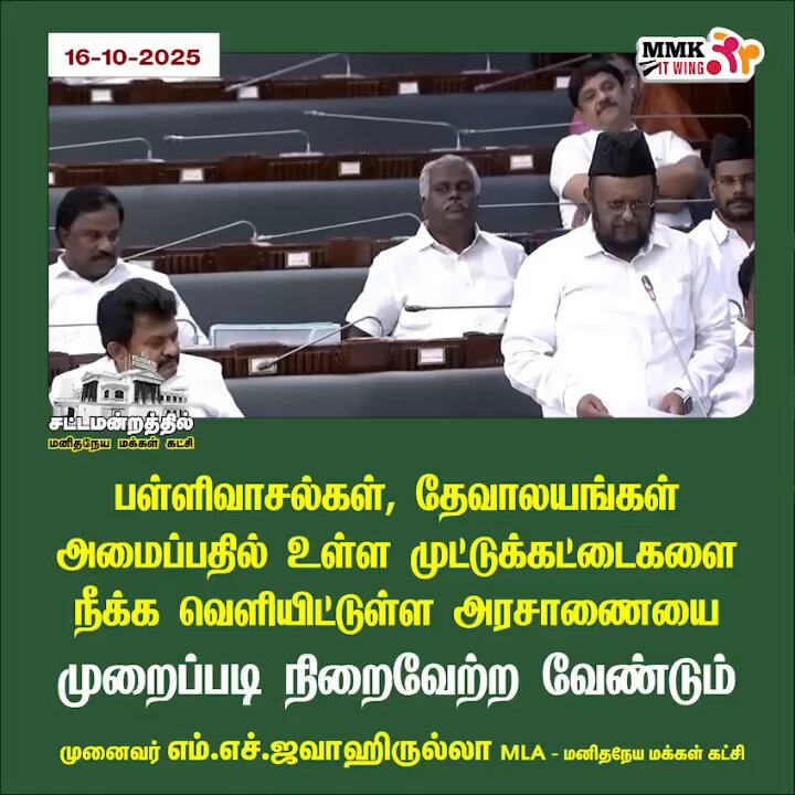 பள்ளிவாசல்கள் தேவலாயங்கள் அமைப்பதில் உள்ள முட்டுக்கட்டைகளை நீக்க வெளியிட்டுள்ள அரசானையை முறைப்படி நிறைவேற்ற வேண்டும் பேரா.எம்.எச்.ஜவாஹிருல்லா,MLA, தலைவர்,மனிதநேய மக்கள் கட்சி. #mmkitwing #jawahirullahmla #manithaneyamakkalkatchi #TNAssembly2025