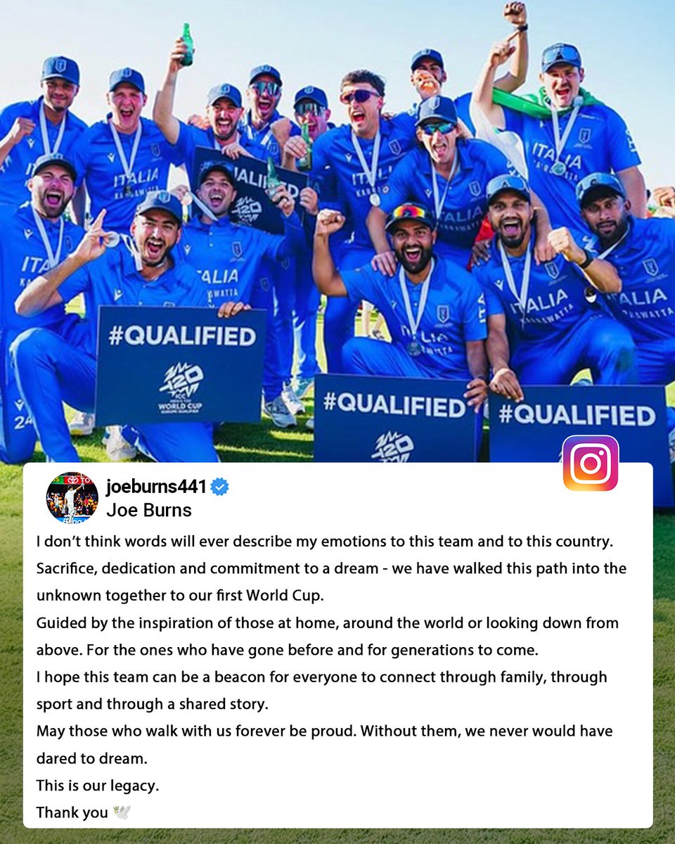 Joe Burns pens a heartfelt message after Italy secures a historic spot in the T20 World Cup 2026 🇮🇹 #JoeBurns #Italy #T20WorldCup