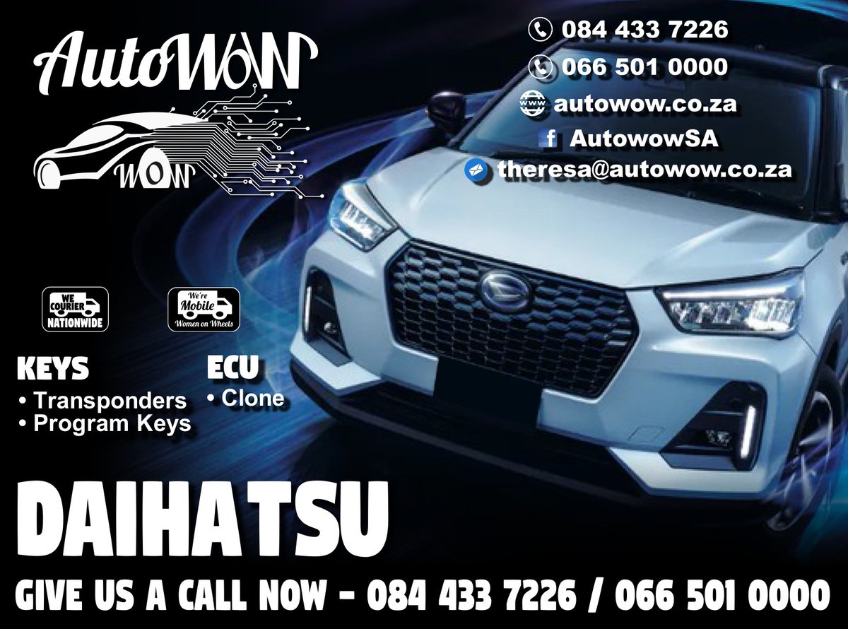 AutoWow Gauteng - DAIHATSU -Program Keys & transponders and more. log onto autowow.co.za for more information Contact us on 0844337226 / 0665010000 or Click and like and drop us message on our FB page facebook.com/AutowowSA/ #autoWow #Keyreplacements #mileagecorrection