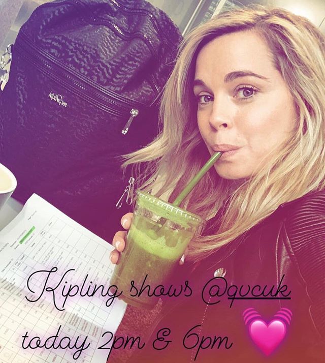 Out of the rain into the studio! Looking forward to our @kiplingglobal shows today! 2pm & 6pm @qvcuk @juliagroberts @catherinehuntleytv #showprepping #kipling #kiplingbackpack #kiplingbags #fashionaccessories #monkeylove #qvc #livetv #greenjuice #joblove #werkwerkwerk