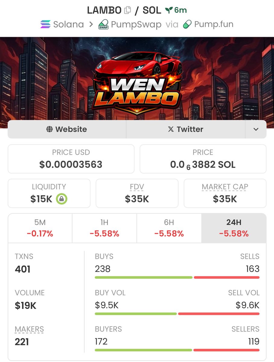I highlighted $LAMBO in my Private Group at $35k Mcap Ca: g9mbhzqfgJLGcjGVzpZbsCmtaMYvhbgEvuMeztWpump Let’s goo #Lambo #Solana #Memecoin #Nfts #Crypto #Bitcoin #Pumpswap #Binance