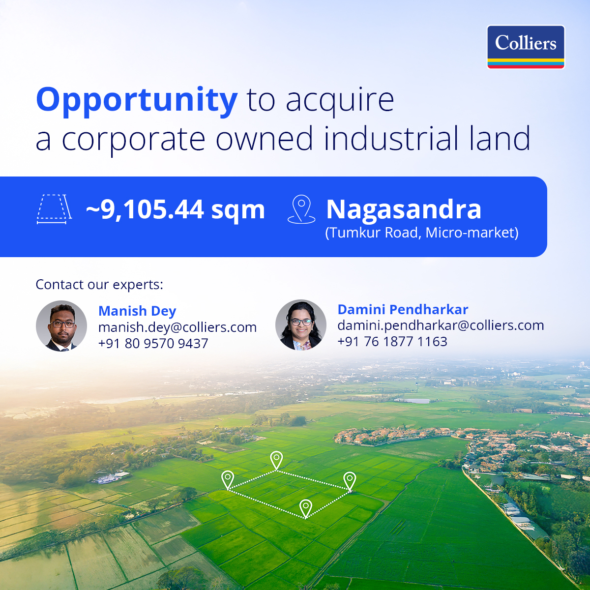 Colliers Capital Markets and Investment Services team has been mandated to sell a corporate owned industrially converted land parcel spanning ~9,105.44 sqm in Nagasandra, Tumkur Road, Bengaluru. Click here: ow.ly/jtM550UfABk #ColliersIndia #investment #landparcel