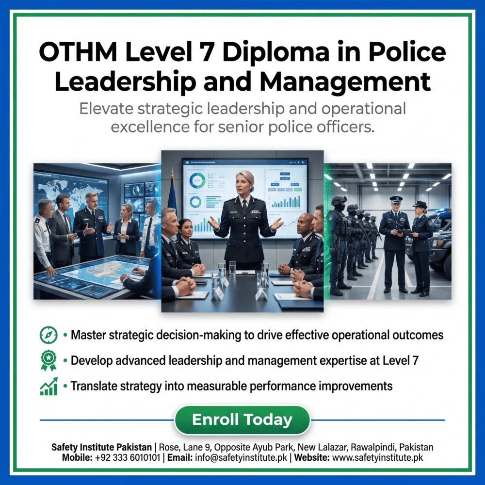 OTHM Level 7 Diploma in Police Leadership and Management — Open for enrolment at Safety Institute Pakistan. Level 7. #OTHM #Level #Diploma #Police #Leadership #Management #VocationalTraining #Diplomas #Pakistan