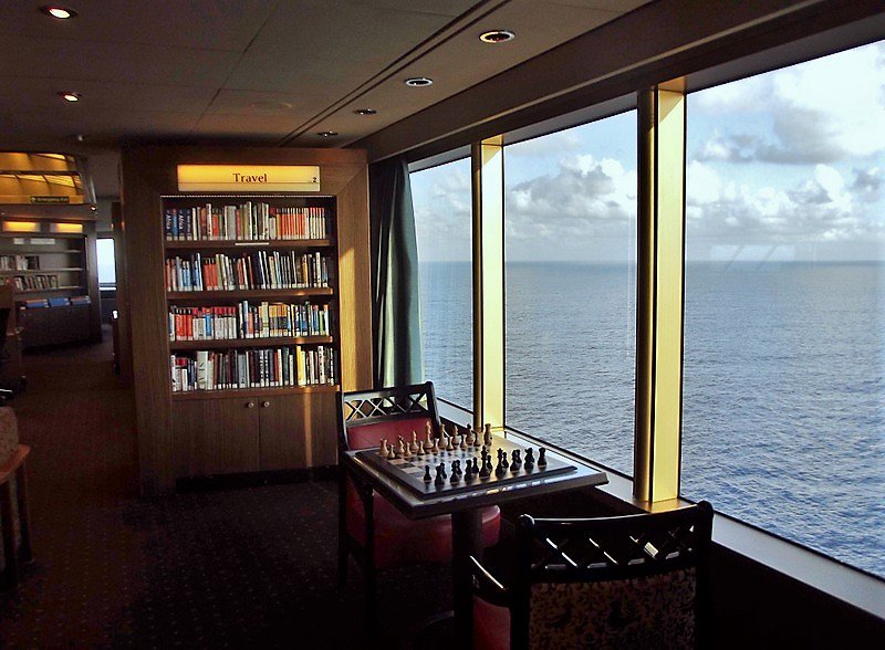 Chess anyone? Once again we're sharing photos of #libraries around the world visited by WPL staff on their vacations. This photo is of just a small section of the library on the Holland America Line's MS Eurodam. #librarywithaview #TravelTuesday #cruiseship