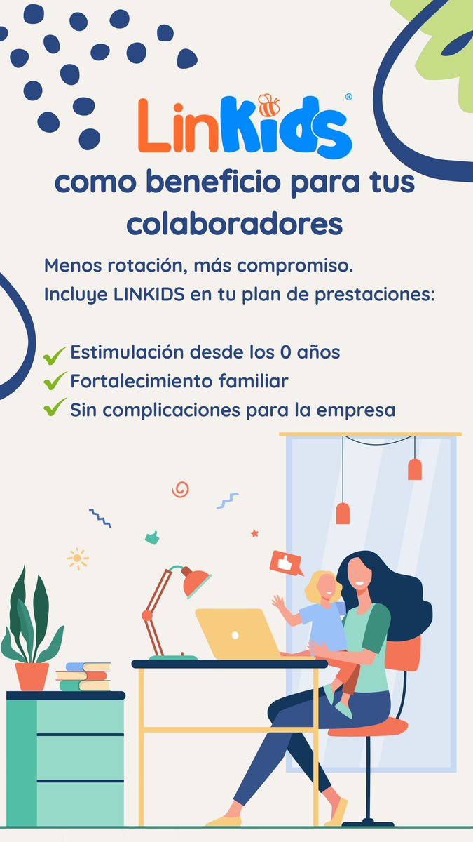 El bienestar laboral empieza desde casa. Con LINKIDS como prestación, tus colaboradores reciben estimulación temprana para sus hijos desde los 0 años. ✅ Menos rotación ✅ Más compromiso ✅ Sin complicaciones #RRHH #BeneficiosLaborales #Linkids #EstimulaciónTemprana