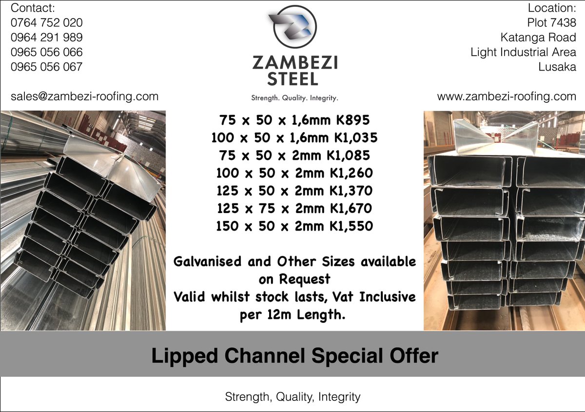 Lipped Channels. Mild Steel and Galvanised. #LippedChannels #Purlins #SteelInnovation #ProudlyZambian @ZambeziSteel