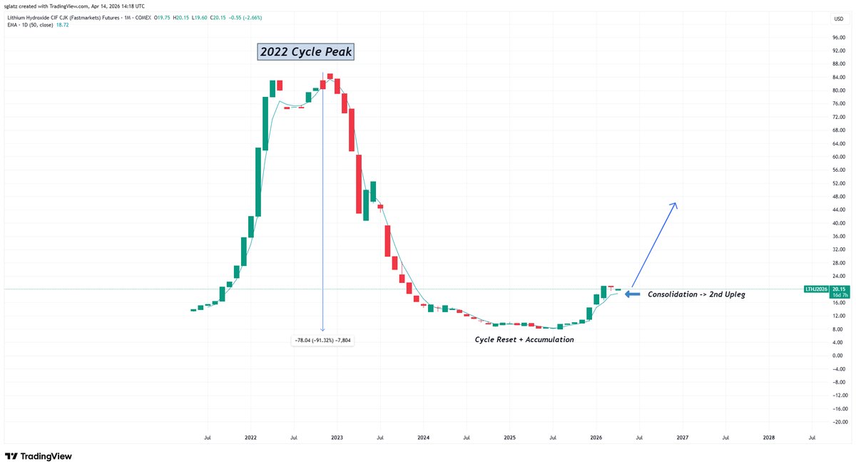Been a minute since I’ve posted on #lithium… LCE price showing a healthy trend + $PLS just printed a new ATH. This is where quality gets repriced, top-down. Tier 1: $LTR $SGML $SQM $MIN $RIO $IGO Tier 2: $ELV $CXO Next wave: #WC8 $PMT #WR1 $LIFF $GLN #A11 & my pick $QTWO