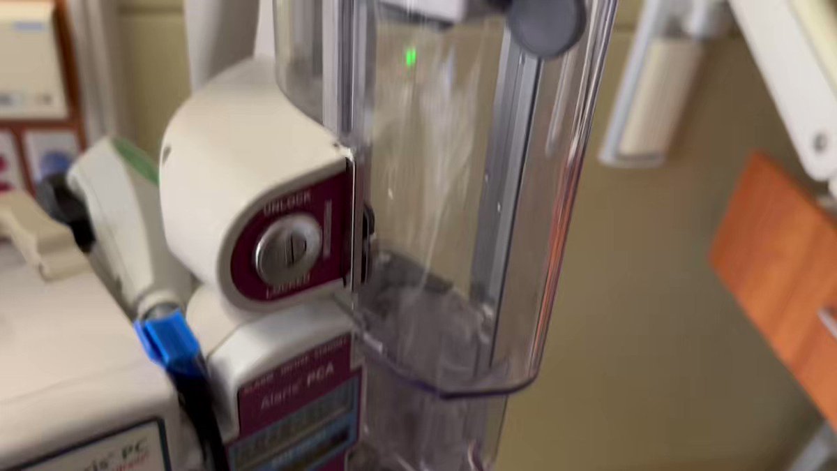 Another gem from the same hospital room. This lock is intended to prevent tampering/abuse/overdose of patient-administered narcotics (i.e., push the button for pain relief). This lock could be all there is between a patient and a dangerous/lethal dose of medication. 😳