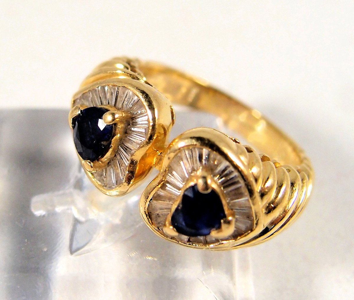 Heart to heart #loversofinstagram #18Ksolidgoldring with natural #baguettediamonds and #facetedbluesapphires #Hallmarkedfinejewelry bit.ly/2tC1dTz via @rubylane