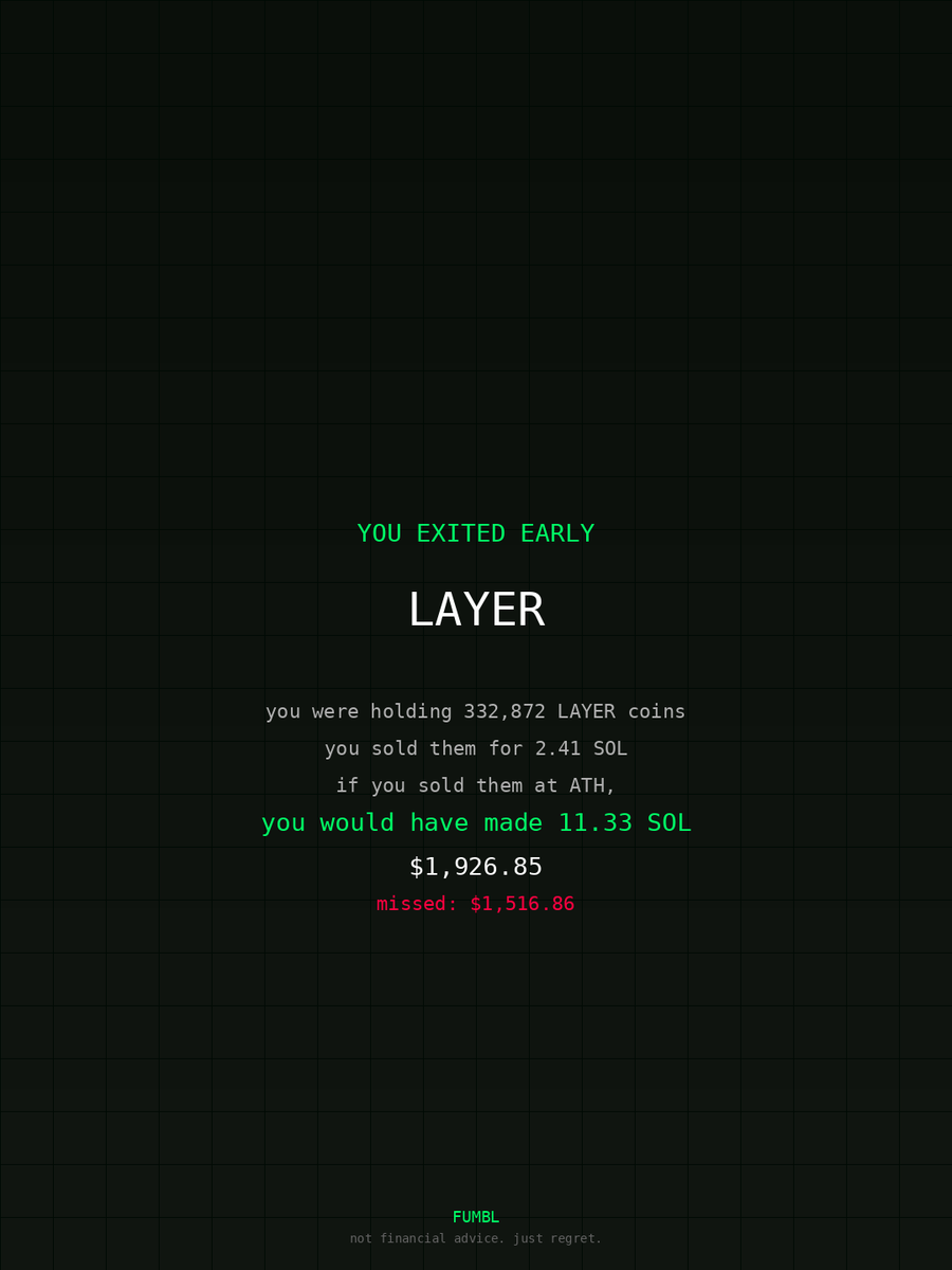 Went to fumbledbags.com and saw I missed generational wealth on $LAYER coulda retired the fam Heu2yN7JXzXumbBMwc3UhYLSqwhLYxFTyAp6UNF1uyFM #phantom #lowest