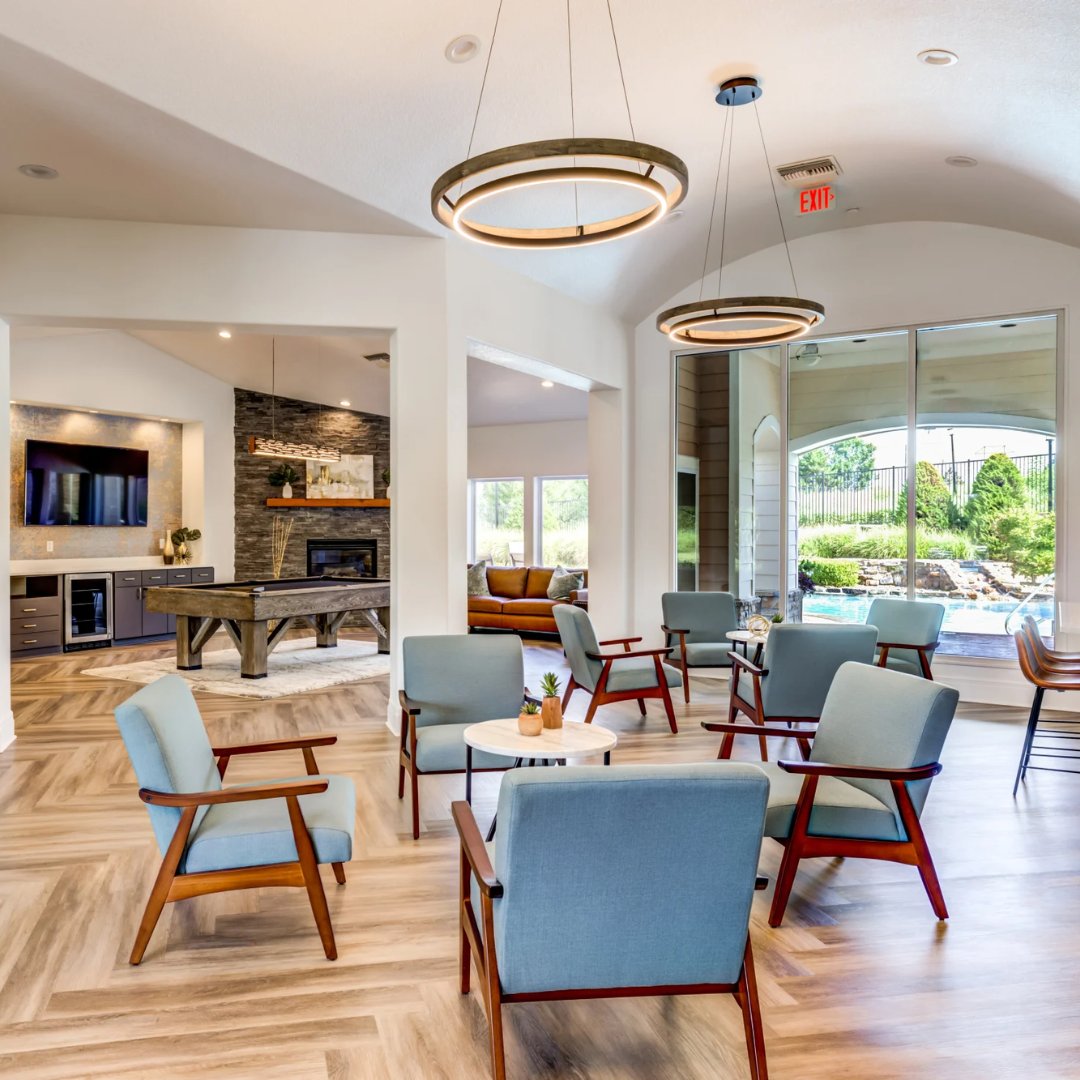 Take a seat and stay a while. Our communal lounge is as stylish as it is comfortable. #woodviewdeerfield #lpcyoubelonghere #lpcmidwest #lincolnpropco #lpchometogether #apartmentstyle #midwestisthebest #luxuryliving #lovewhereyoulive