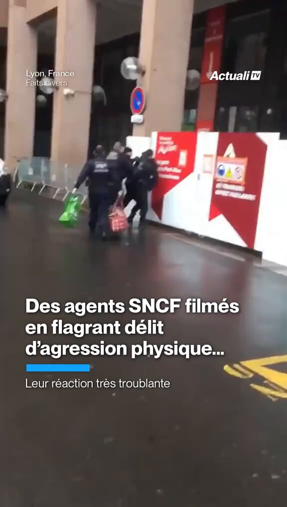 Des agents de la SNCF ont été filmés en flagrant délit d'agression physique avant d'avoir une réaction très troublante... #faitsdivers #lyon #gare #sncf