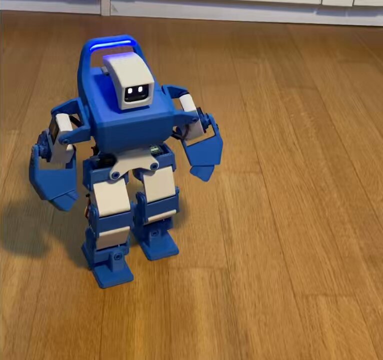 眼の表示はうまいことできた。今度は脚が長すぎる(^^;) 難しいもんだな。BLEコントロールではなく、取り敢えずすべての動きを順にさせようとしたら、ビクともしません(^^;) #NX24 #M5Atom