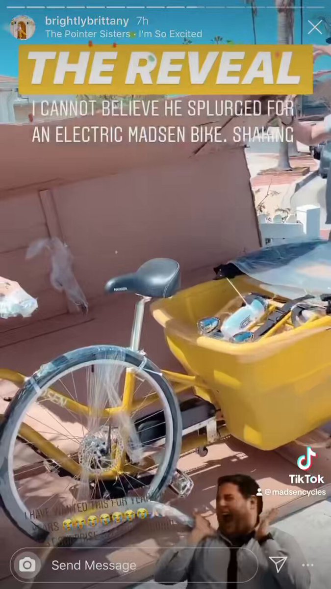 “My mom dream come true @madsencycles 🤩📦🚲🇺🇸 thanks to my boo for this amazing gift of what will be amazing family memories, and for being super extra with me 😍 if you see us (you won’t miss us) say hi! 🙂 #madsencycles #familybike #familyadventures #summer” - Amy Barlow 🇨🇦