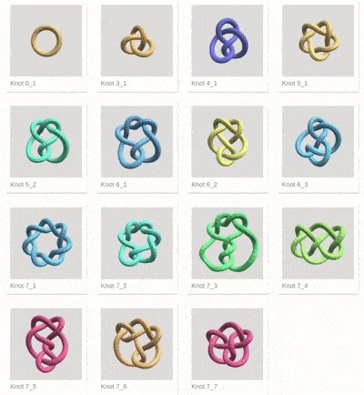 La tabla de nudos de Rolfsen hasta 7 cruces Una presentación interactiva genial basada en el WebGL de @threejs_org A pasárselo bien!! ➰➰➰ bit.ly/2tUTFvg #mates #ciencia #mathrules #mathTeacher #elearning #topologia