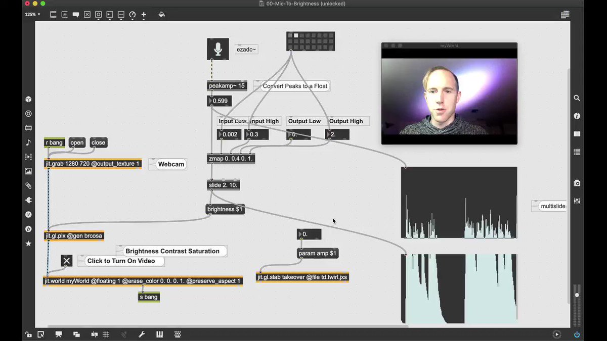 Finale of our Path-A-Long series w/ CT Kyle Duffield of our where we map a mic to video effects in Jitter! Video 3 - Part 1/3 -KD #creativecoding #maxmspjitter #maxmsptutorial