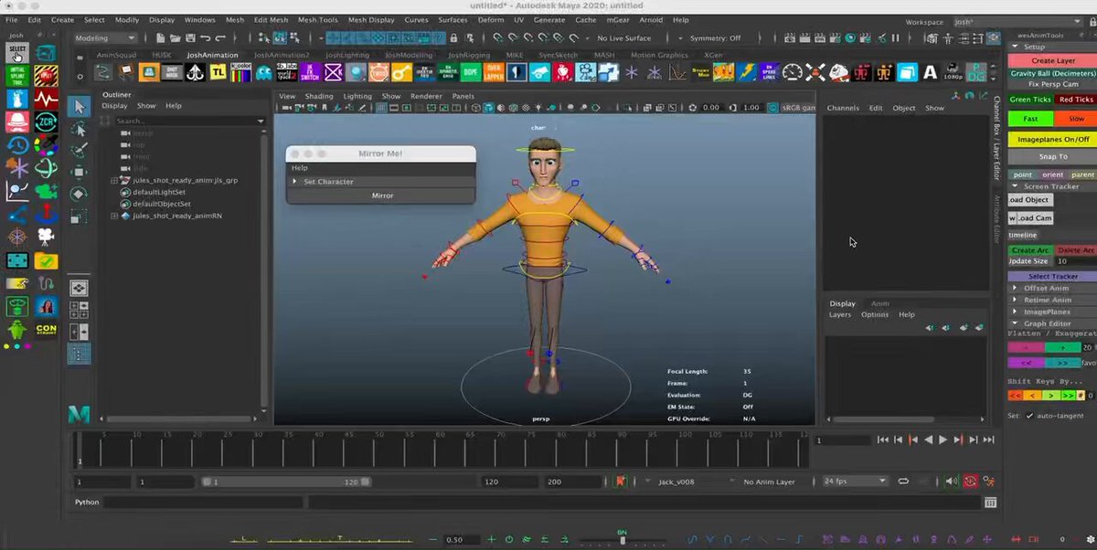 Working on a new #mayatool. Still very early stages, but hopefully it should be a universal mirroring tool that will work with any rig. Promising results so far! #mayascript